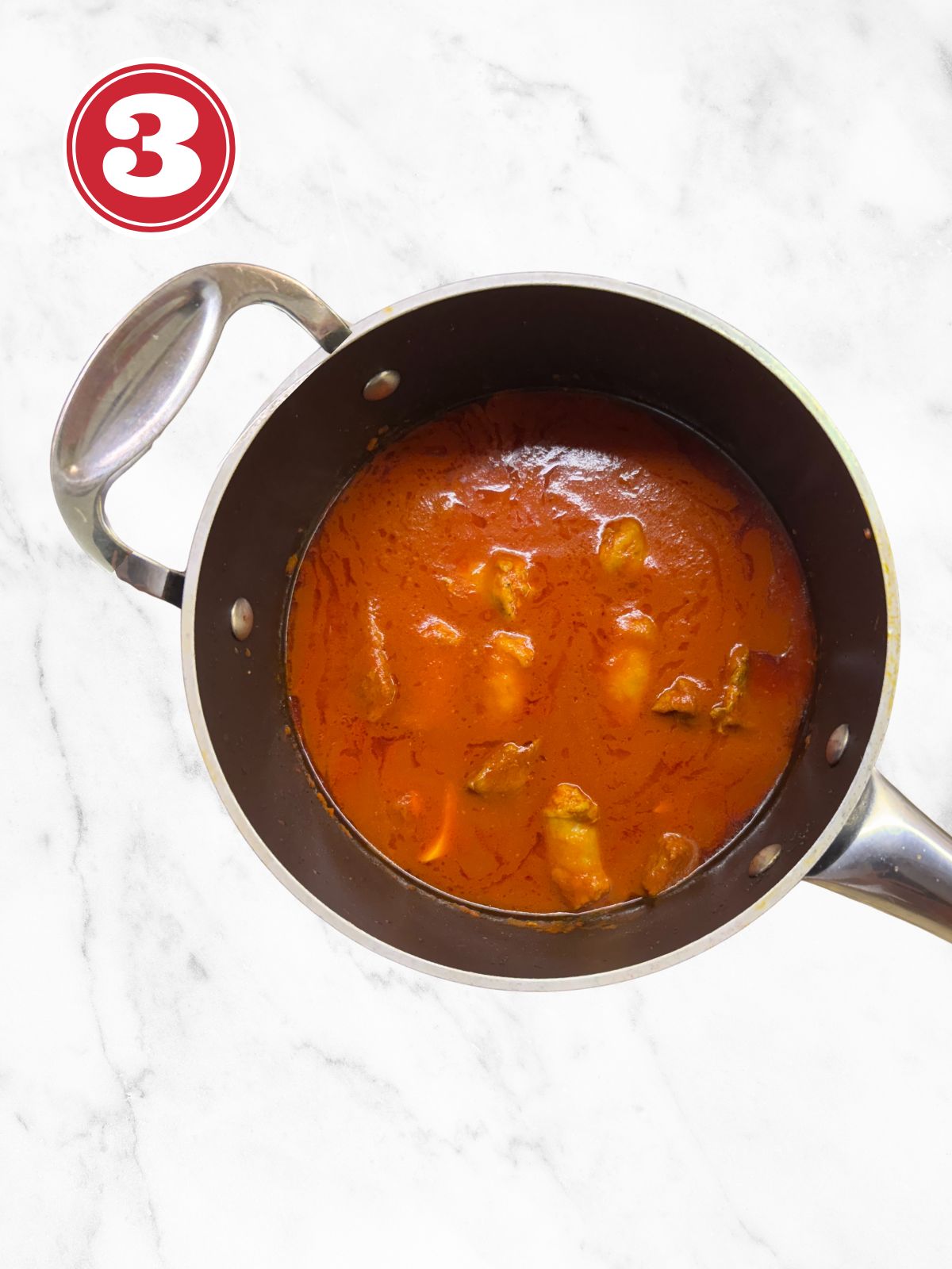 Bring to boil and then simmer covered on low heat for about 60 to 90 minutes and the meat is fork tender.